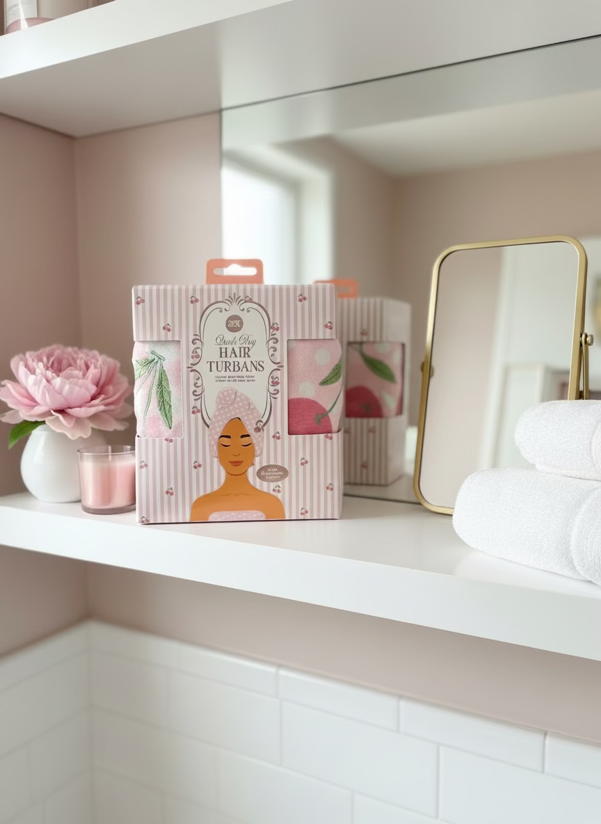 "Reduce blow-drying time with our Hair Turbans. Made from gentle, absorbent fabric, they are safe for all hair types and come in a convenient 2 pack.