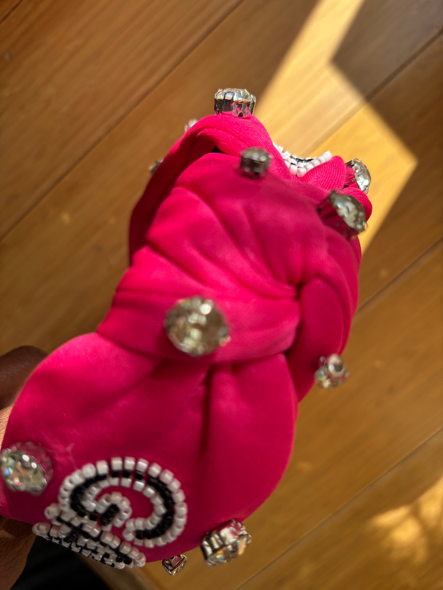 Game day but keep it cute! Get ready for game day with a touch of girly flair! Our cushioned pink headband is adorned with black and white beads and sparkling rhinestones, perfect for football lovers and girly girls alike. Show off your team spirit!