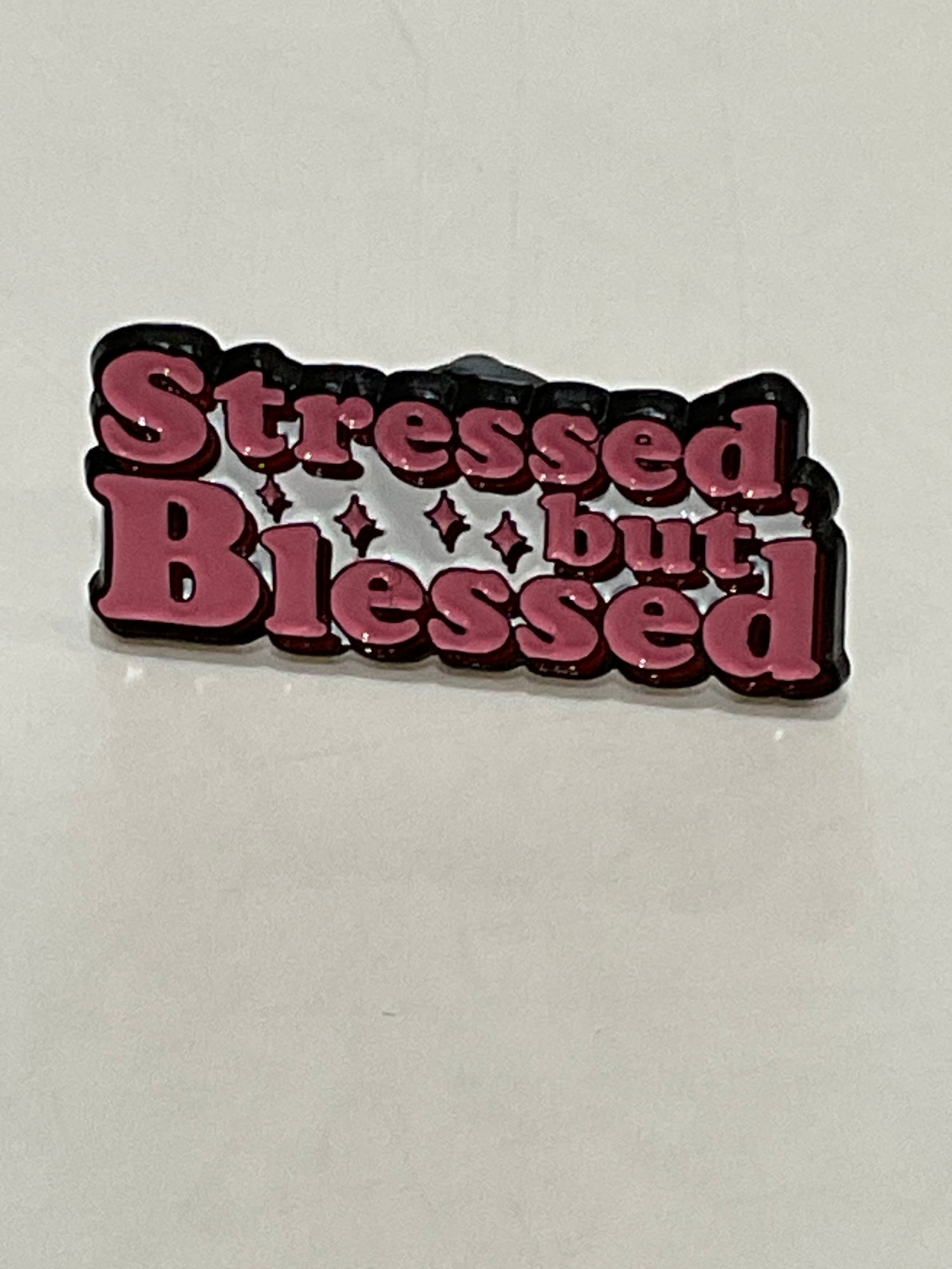This Stressed but Blessed Pin is the perfect accessory to add to your bags, hats, jackets, and more. With its sleek and stylish design, it will make a statement while reminding you to stay positive and blessed, no matter the stress life may bring. Show off your positivity and style with this must-have pin.