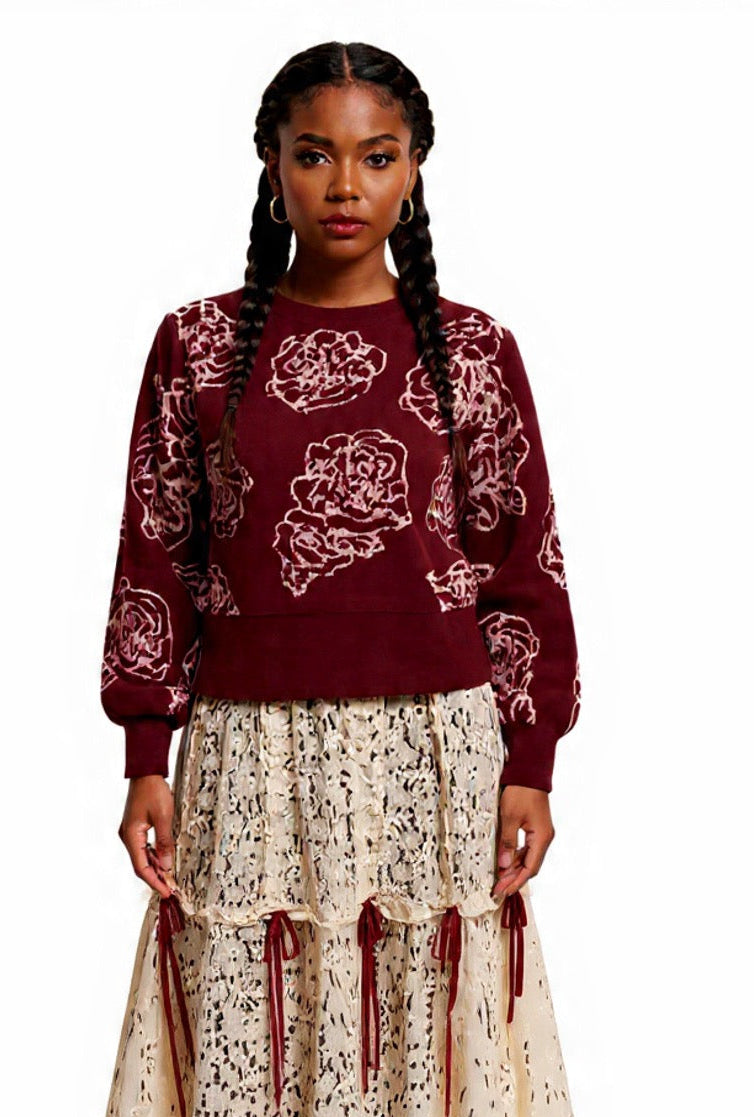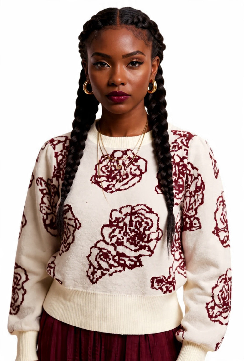 The Abby Knit Sweater combines elegant flower patterns with warmth and comfort. This crew neck sweater features long sleeves with pleated shoulders, as well as ribbed detailing on the neck, cuffs, and hem. Stay stylish and cozy with this must-have addition to your wardrobe.